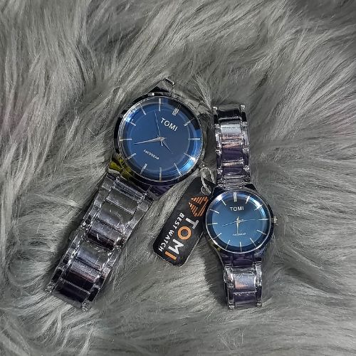Tomi Couple Chain Watch Set – Stainless Steel Pair for Gifting (His & Hers) Blue Dial